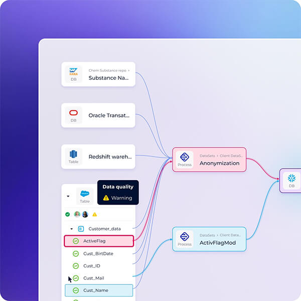 - Lineage et analyse d’impact : Visualisez les flux, comprenez les dépendances et anticipez les impacts