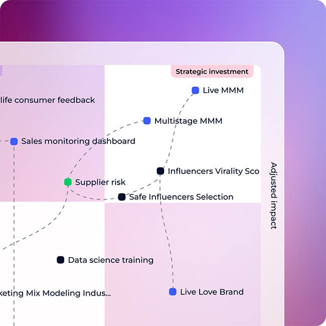 - Pilotage de la valeur (Portfolio) : Suivez la performance de vos initiatives data et IA, mesurez leur impact business et optimisez vos investissements